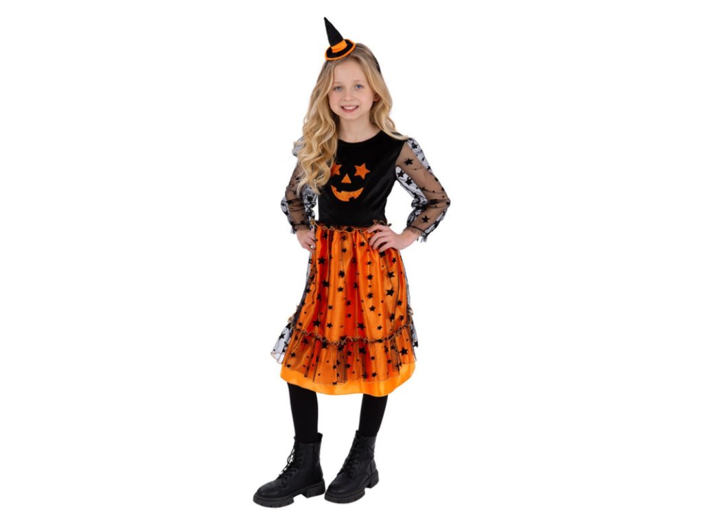 Rozkošný dětský kostým dýně! Šaty a čelenka promění každé dítě v roztomilou halloweenskou hvězdu. Ideální na karnevaly, večírky i party.