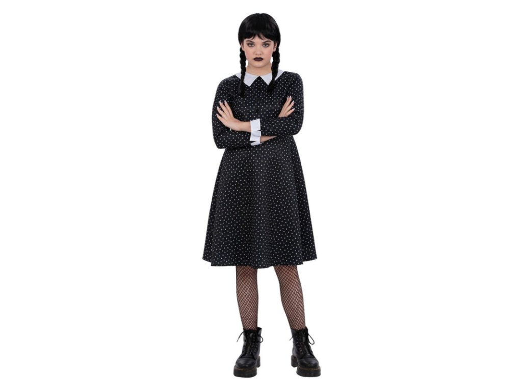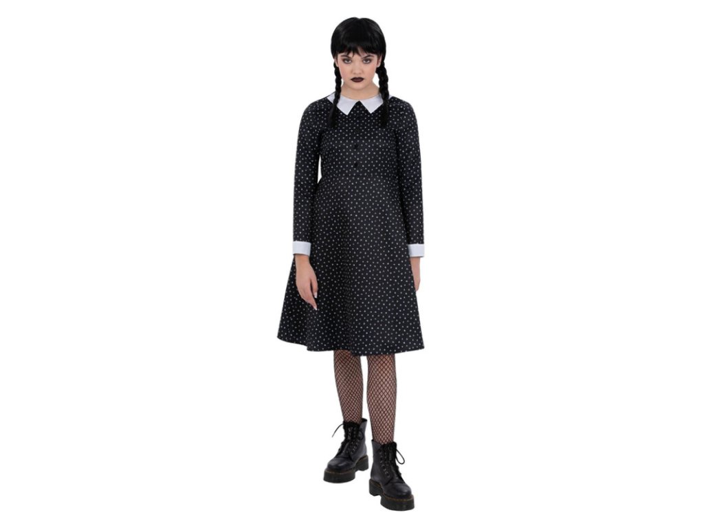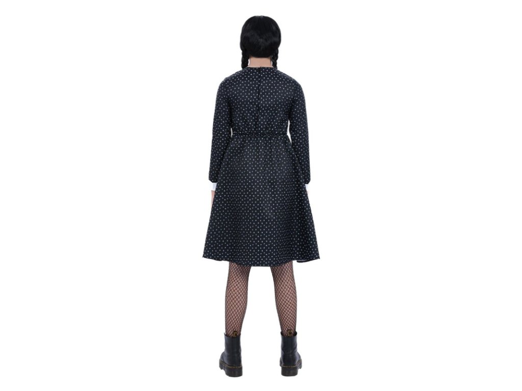 Tento dětský kostým obsahuje šaty s černobílými puntíky, které působí hravě a elegantně zároveň. Stačí přidat veselé doplňky, barevné ponožky nebo copánky a nezapomenutelný outfit na karneval či Halloween je na světě.