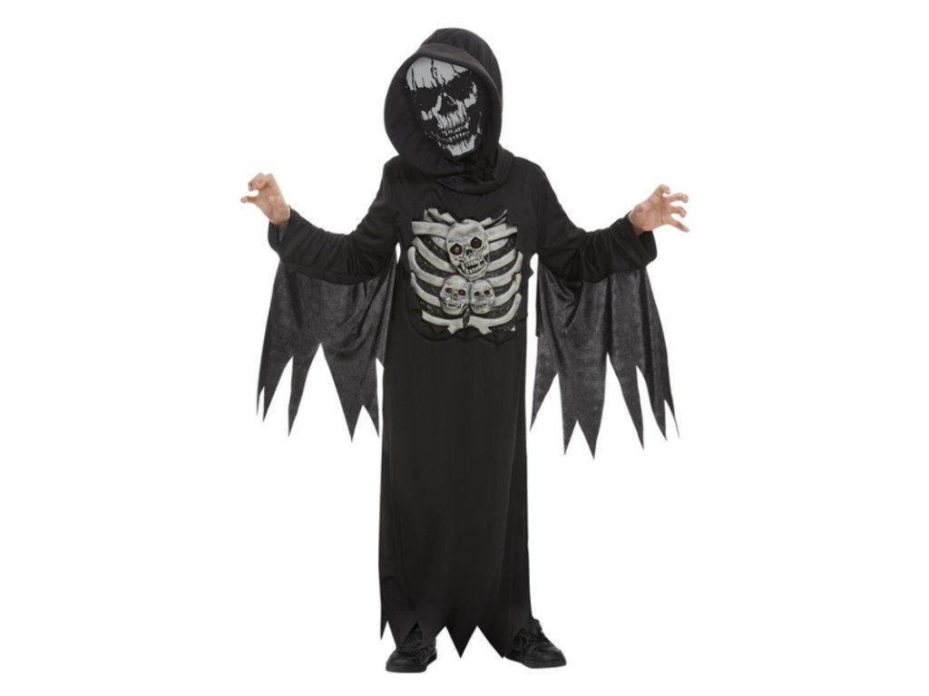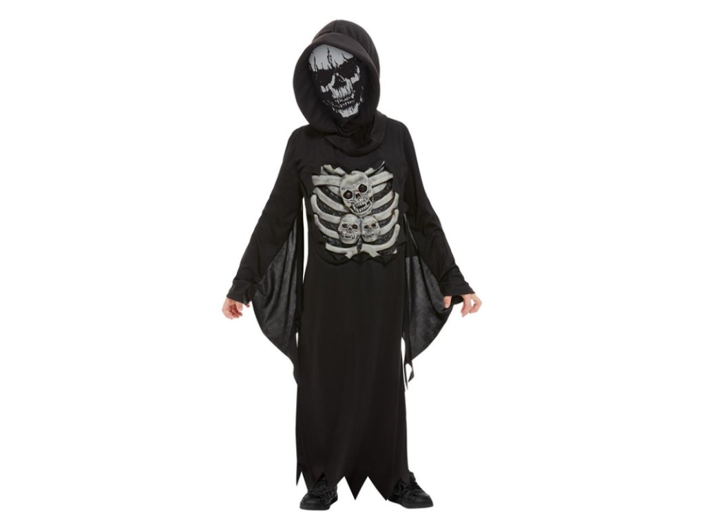Tento dětský kostým obsahuje černý hábit zdobený žebry a lebkami, který dodá opravdovou hrůznou atmosféru.