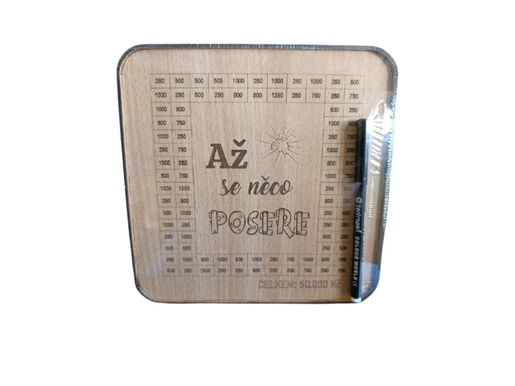 💰 Ukládejte si peníze s úsměvem! Dřevěná pokladnička se škrtacími políčky vám pomůže naspořit na horší časy – nebo na splnění snů. Stačí vhodit obnos a škrtnout! 🖊