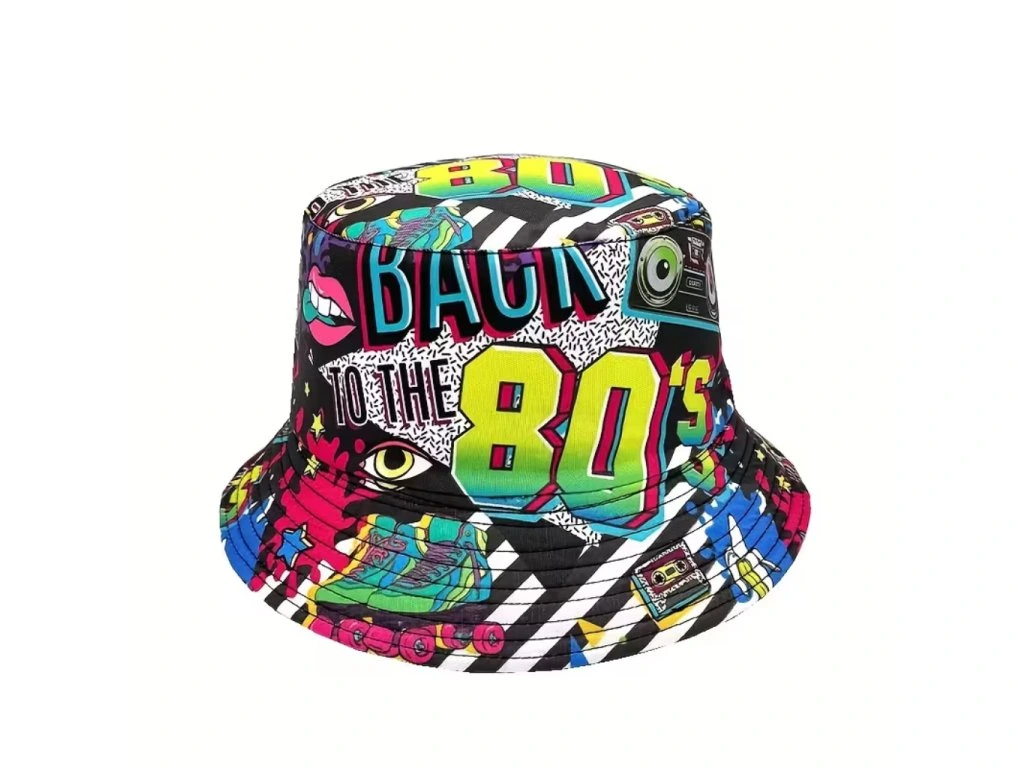 Přeneste se zpět do zlaté éry osmdesátek s tímto stylovým černým kloboukem, který je zdobený typickými neonovými motivy jako gramodesky, kazeťák, čísla a další symboly této nezapomenutelné dekády.