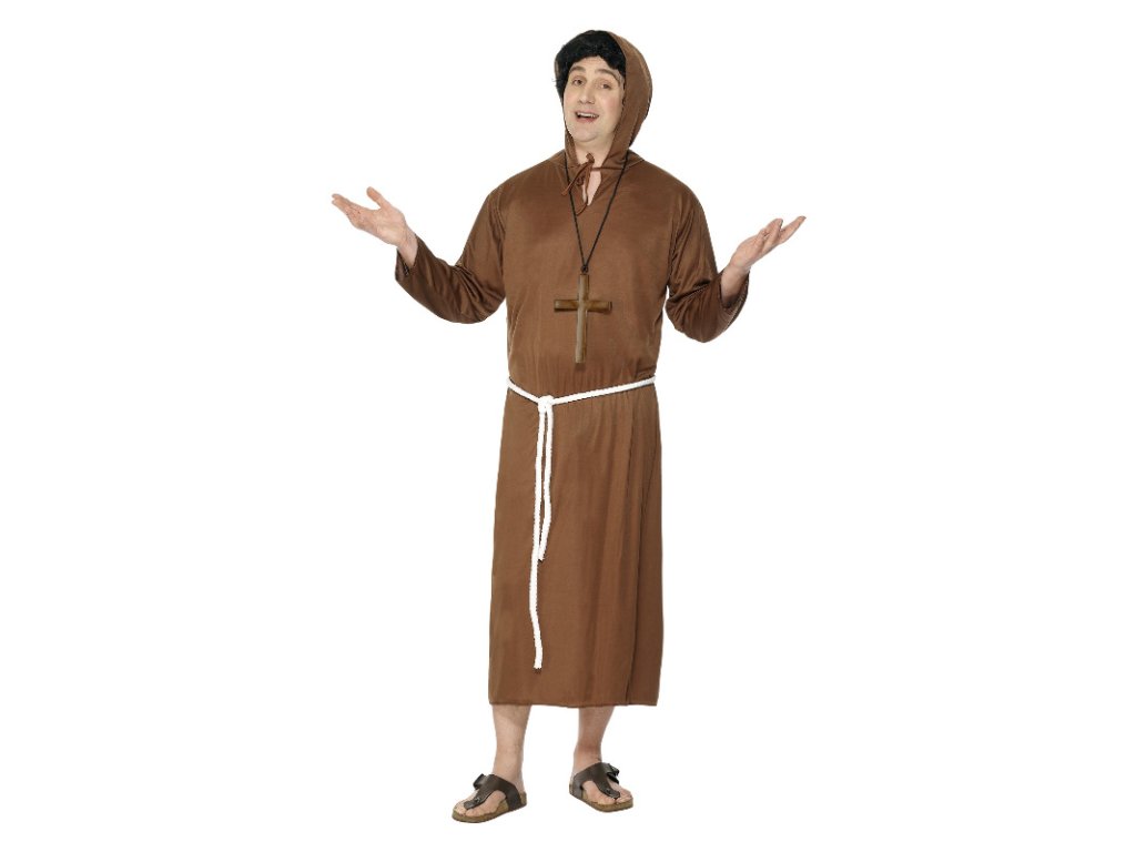 Dlouhý hnědý plášť s kapucí a šňůra v pase dodávají autentický středověký vzhled, ideální na historické večírky, divadelní představení nebo hororové akce. Kostým se hodí pro mnichy, mystiky nebo postavy z fantasy světů.