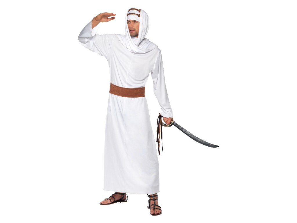 Dlouhá bílá tunika s pásek spolu s typickým orientálním šátkem vytvoří autentický vzhled pro tematické večírky, karnevaly nebo divadelní představení.