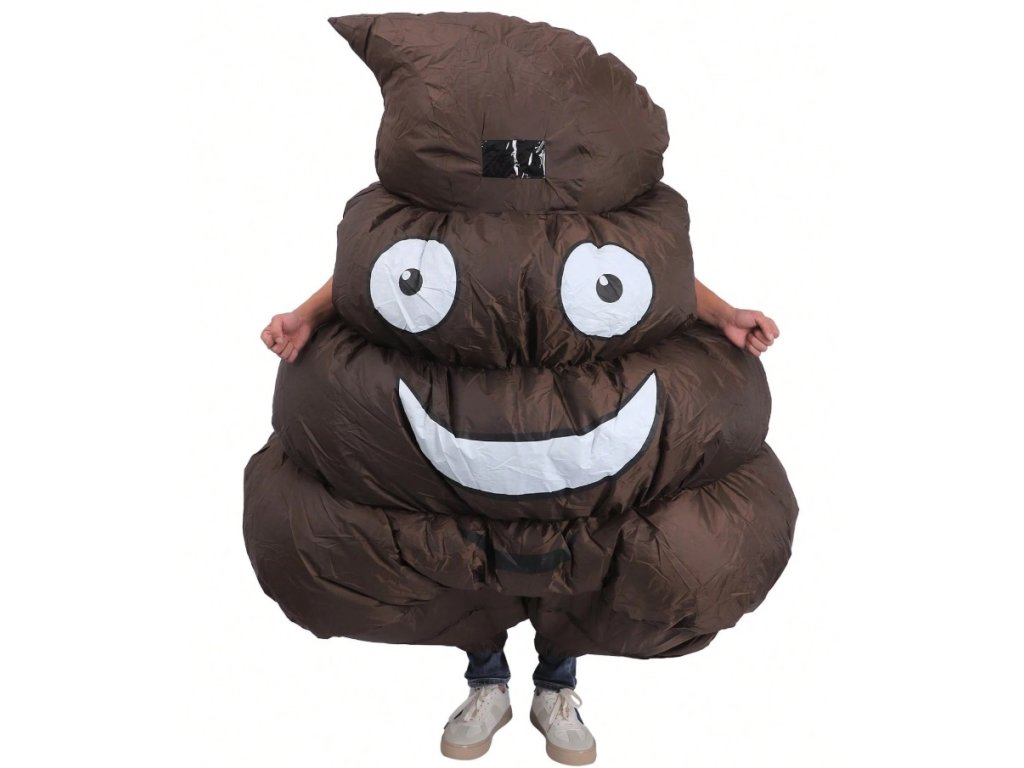 Staň se středem pozornosti v nafukovacím kostýmu hovínka! Ventilátor udrží tvar, ty se jen bav – ideální na karnevaly, párty i oslavy.
