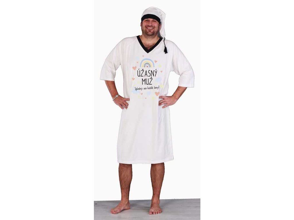 Pohodlná noční košile s čepičkou s vtipným potiskem pro klidný spánek a dobrou náladu!
