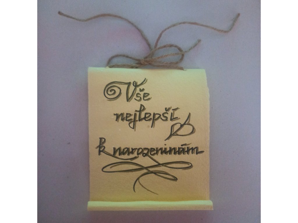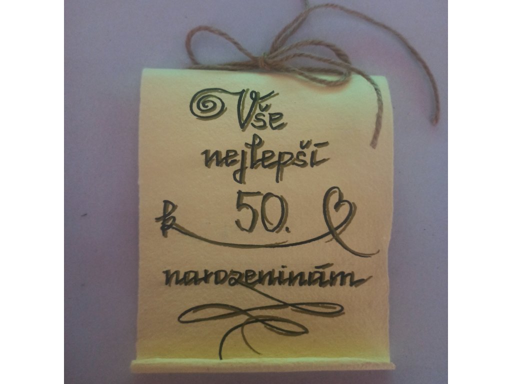 Originální pergamenové přání k narozeninám na ručním papíru – stylový a nezapomenutelný dárek.