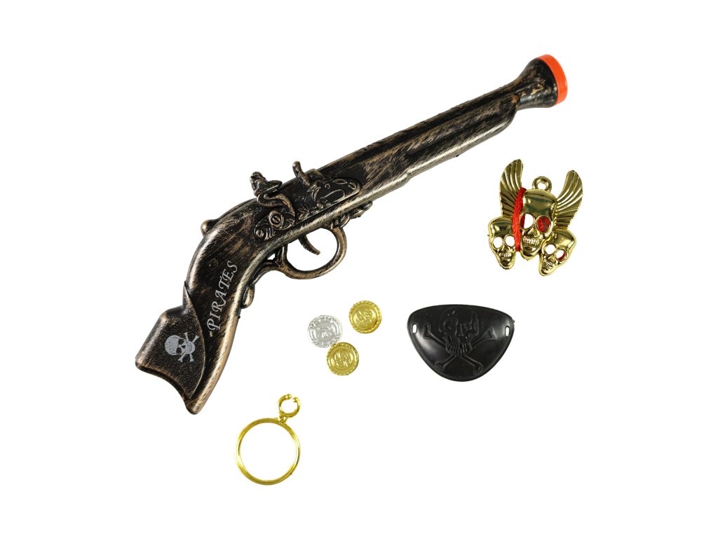 Sada obsahuje pirátskou pistoli, oční klapku a další stylové doplňky, díky nimž se každý malý kapitán okamžitě promění v odvážného piráta sedmi moří.
