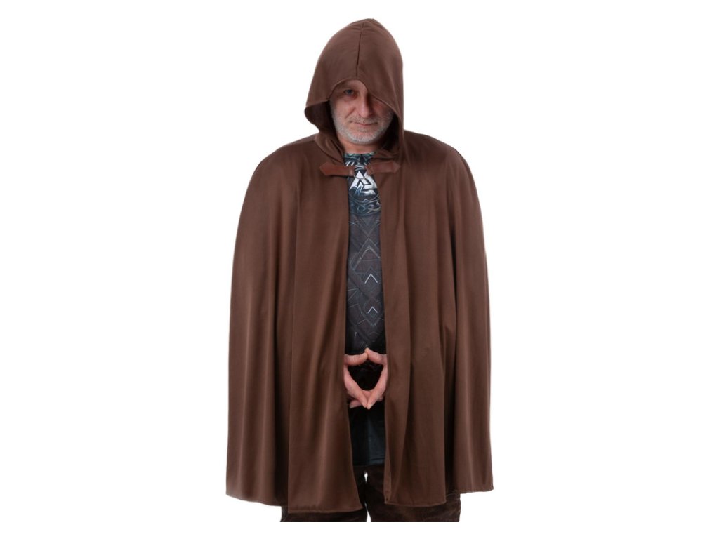 Hnědý plášť s kapucí je univerzálním kostýmovým doplňkem, který otevře dveře vaší fantazii!