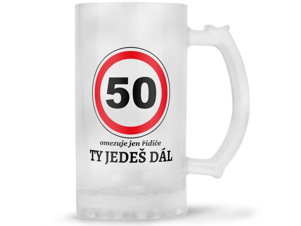 Luxusní korbel z mléčného skla. Potisk je na obou stranách.