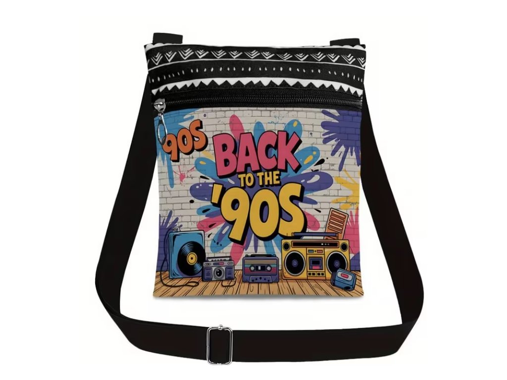 Stylová retro taška ve stylu 90. let! Perfektní doplněk na karneval, party nebo narozeninový večírek. Stačí stáhnout šňůrku a hurá do akce!
