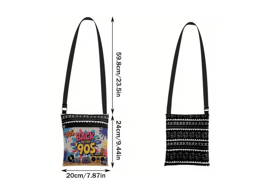 Vraťte se zpět do bláznivých 90. let s naší retro taškou! Barevný design a praktická na šňůrku z ní dělají nejen skvělý módní doplněk, ale i funkční pomocnici na mobilní telefon na každé akci. Hodí se na karnevaly, tematické večírky, narozeninové oslavy i retro party, kde vám zajistí styl a pohodlí.
