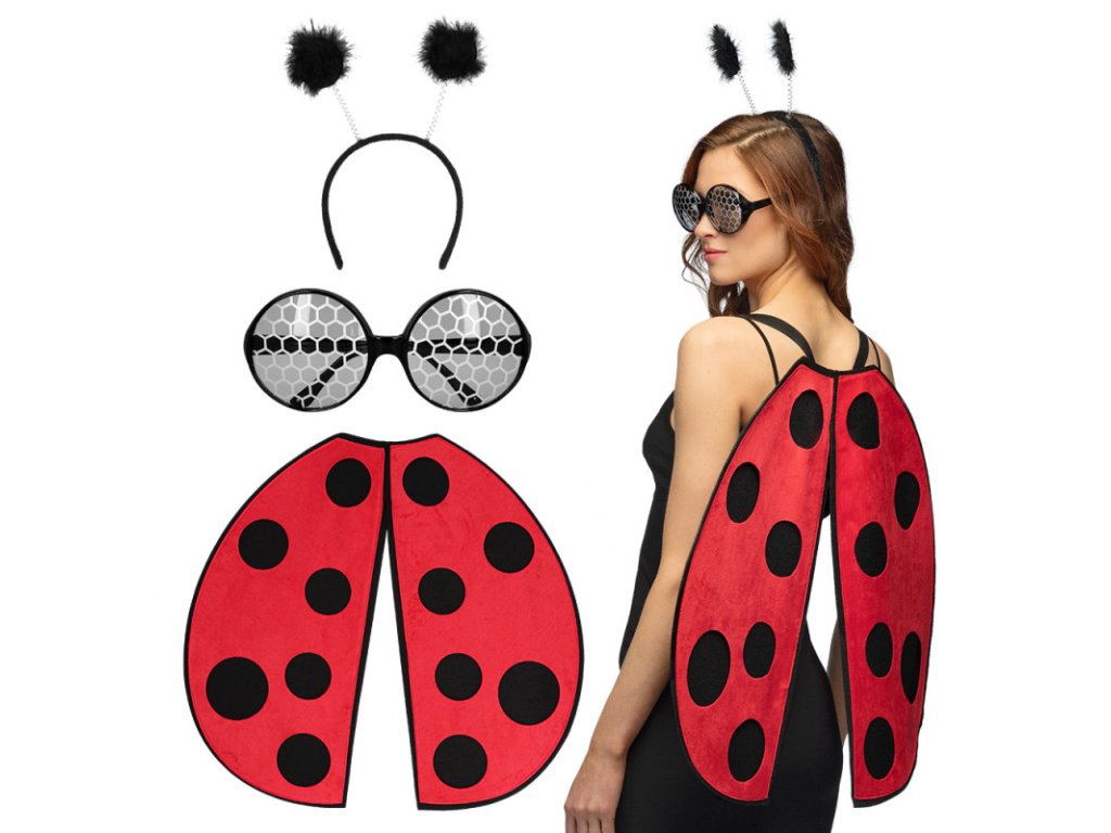 Rozkošná sada Beruška pro malé i velké parádnice! Křídla, brýle a čelenka z vás udělají hvězdu každé party či karnevalu.