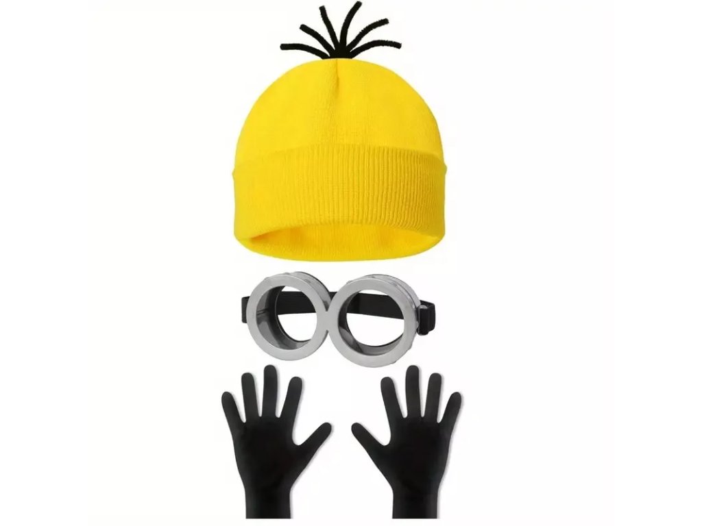 Proměň se v roztomilého Mimoňe! Sada s čepicí, brýlemi a rukavicemi je ideální na party, karneval nebo narozeninovou oslavu.