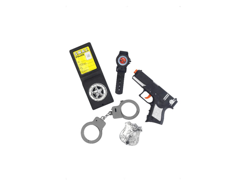 Staň se hrdinou večírku! Policejní set s pistolí, pouty, odznakem a pouzdrem tě promění v neohroženého strážce pořádku. Ideální na party a karneval.